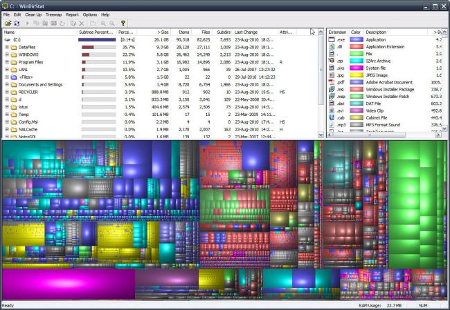 Run the tool, and where your space have gone. If your user rights do not include administrator rights, you will only be able to see your disk usage.